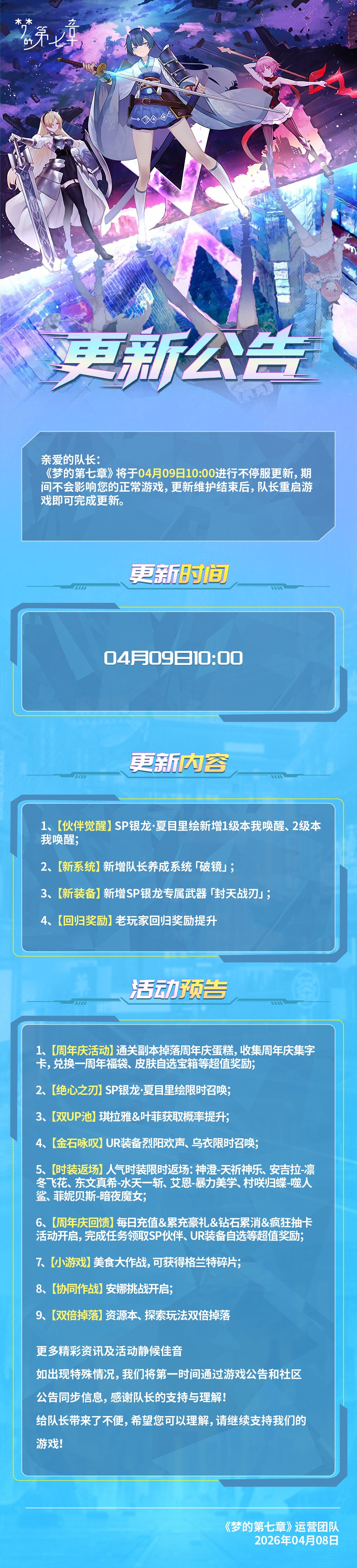 《梦的第七章》4月9日不停服更新公告