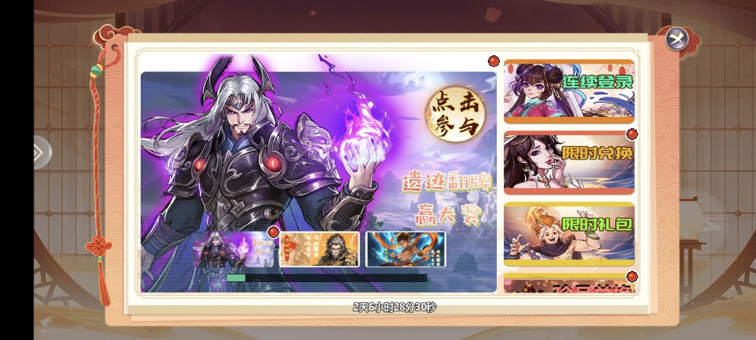 4. 累充&每日累充福利:累充返利可领取洛卿、笛羽肜碎片、绝品万能真诀页、稀有万能真诀页;每日累充可获取梦汐碎片、群魔乱舞、罗汉宝典