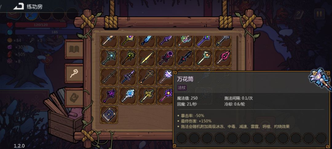 如上图万花筒,该法杖为经典增幅法杖,释放法术的时候可以为法术附加上负面状态,该法杖配饰所有流派