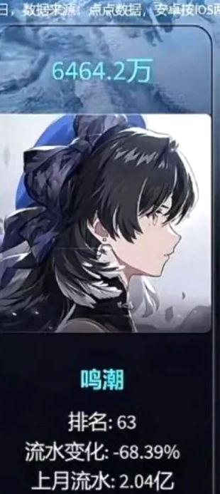 节后回落!《鸣潮》三月流水6464万,囤货静待3.3新版本