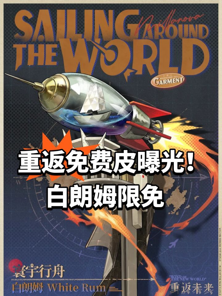 新衣着隶属于新世界的风系列,立绘中以复古航海海报风格,点缀以醒目张扬橙黄大字、旧世界地图、罗盘纹路、火箭、漂流瓶等元素,把环球航海、复古冒险感的氛围感拉满。