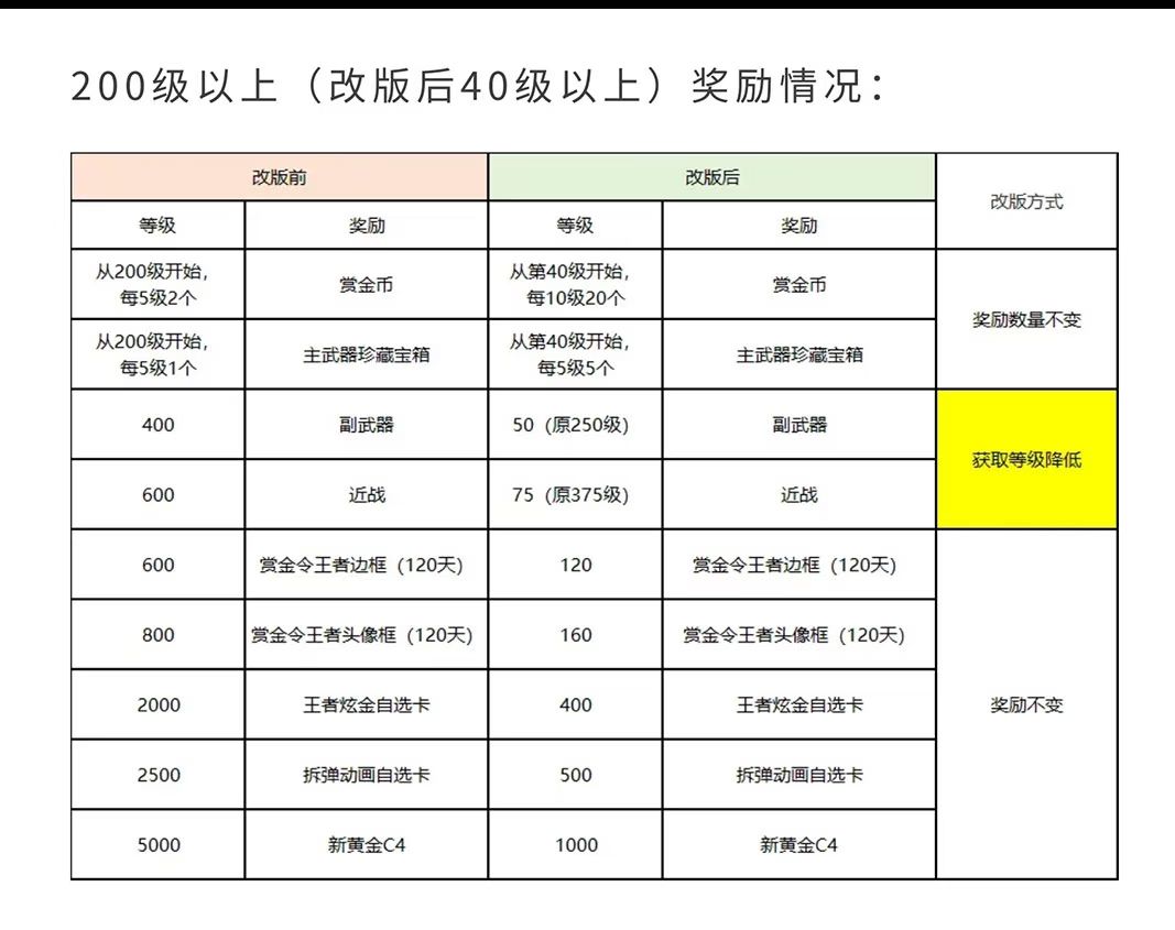 新赛季等级将按 5:1 比例压缩(如原200级变40级),积分获取规则同步调整为每500积分升1级。放心,核心奖励总量不变,且原C4工具钳奖励替换为 4000钻石,血赚!