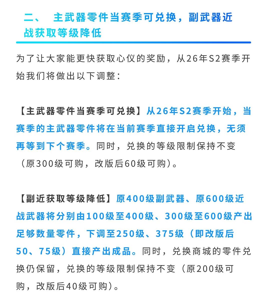 主武器:当赛季零件当季即可兑换,无需苦等返场。