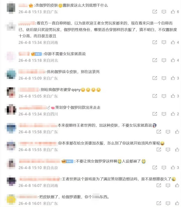 批评声在官方社交账号评论区集中爆发(部分截图如图三),玩家要求在上线前修改皮肤,增加覆盖、调整剪裁。部分玩家甚至表示若不修改,将影响首发口碑,考虑弃坑或抵制氪金。截至4月8日,腾讯天美官方对此保持沉默,未发布任何回应或调整方案。这一争议并非孤立,王者系列历史上曾多次因皮肤尺度引发讨论,但此次发生在新作公测前夕,时机极为敏感。