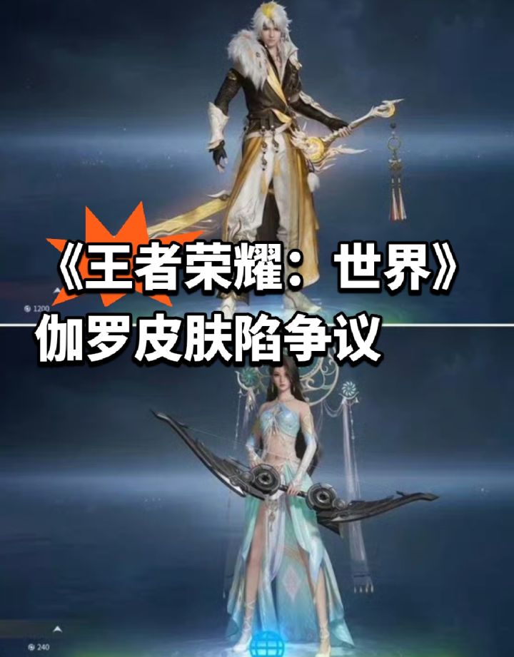 《王者荣耀:世界》PC端公测定档4月10日,这款开放世界RPG承载着王者IP十年情怀,备受期待。然而上线前夕,人气角色伽罗的战令皮肤“蜃楼踏歌”引发玩家不满。该皮肤采用大胆剪裁,大面积暴露角色肌肤,风格偏向性感清凉,不说和《王者荣耀》里的伽罗皮肤相比(如图二),和同期曜的皮肤对比就很惨烈(如图一)。许多玩家认为这严重偏离了伽罗原本沉静、优雅、如女武神般的人设,直言“刻意迎合低俗审美”。