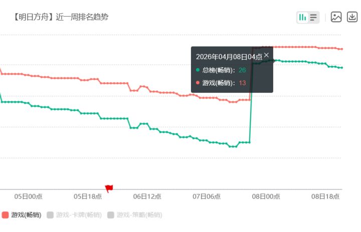第三方平台数据显示,4月8日四点总榜畅销榜排名第26名,游戏畅销榜排名第13名,达到卡池巅峰期,随后卡池流水表现开始出现下滑