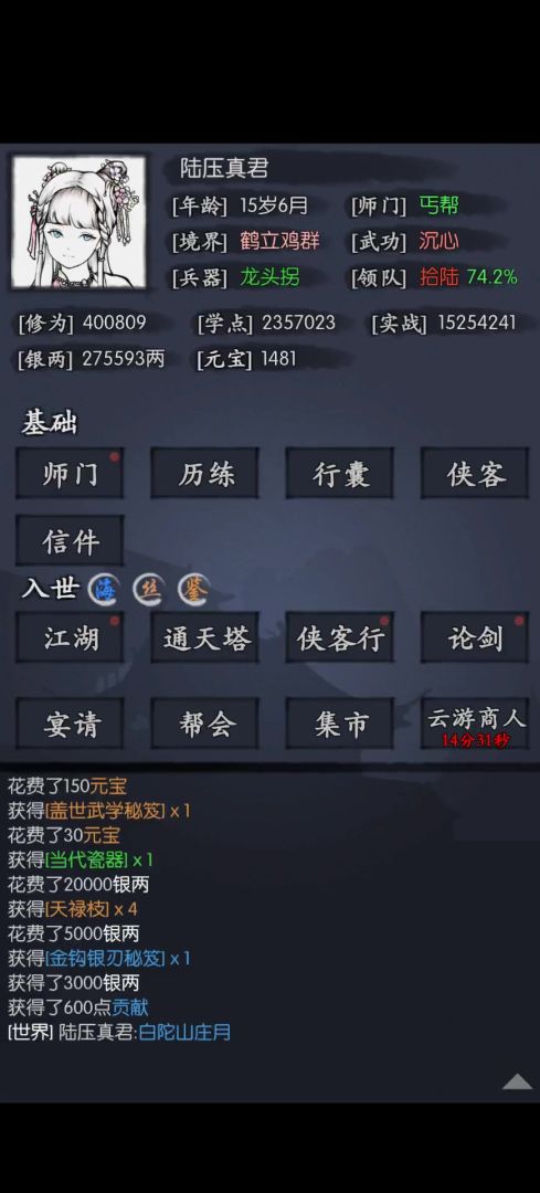 ②木子晴合适的武免和血量,第三回合吃左剑武学,2-1是之前通天升满的