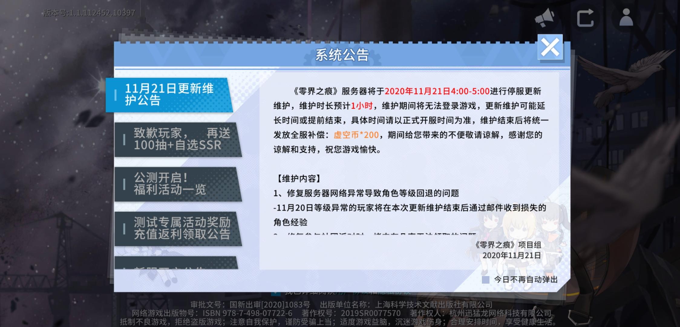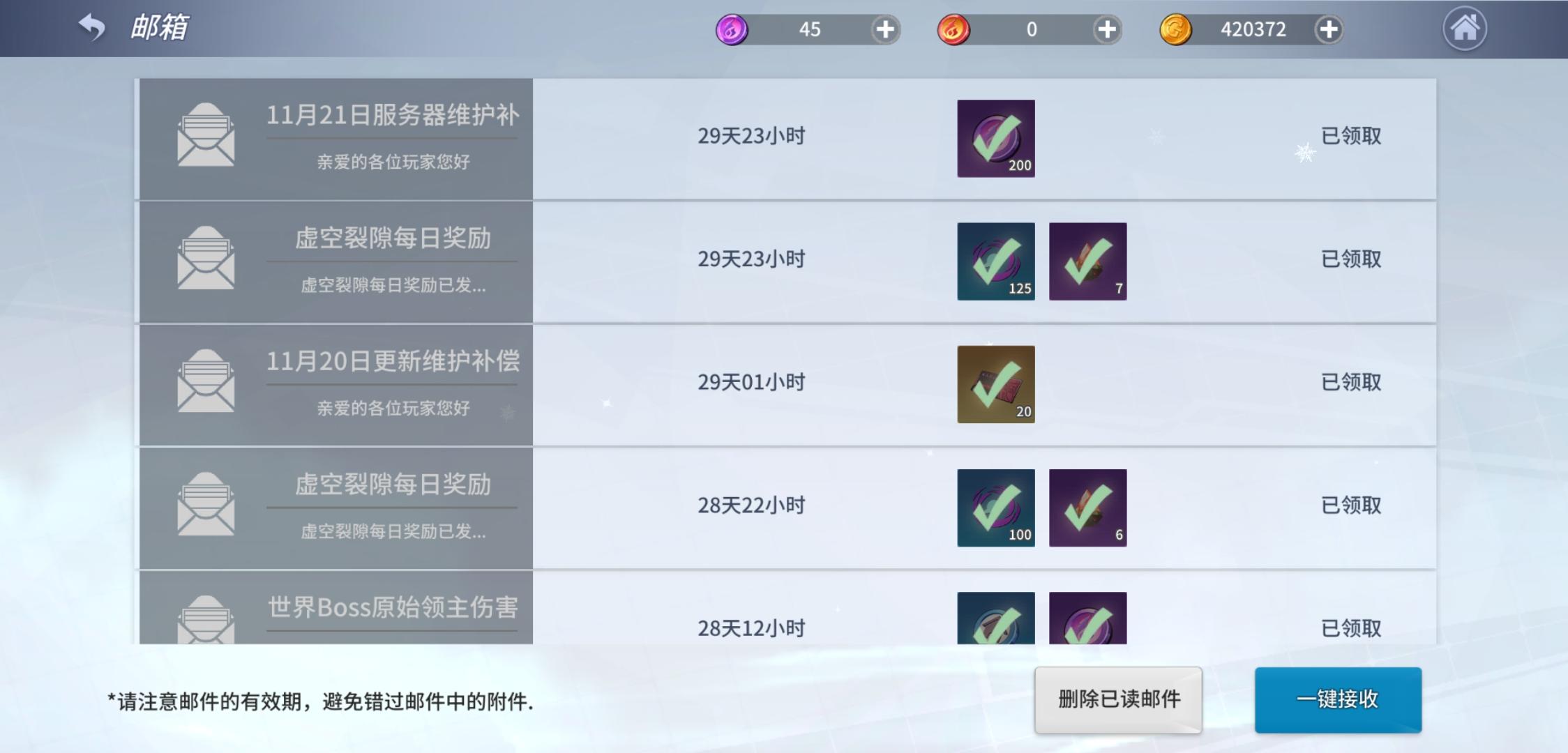 上线看到4点到5点维护丢失经验的送到邮箱结果呢