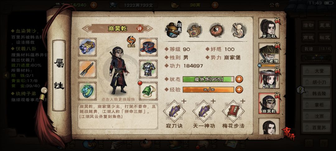 刚升十重太阴,阅历太缺了镇派都点不满,终于过神秘刀客了,下一个东方朔,萌新距离破止又进一步↖(^ω^)↗