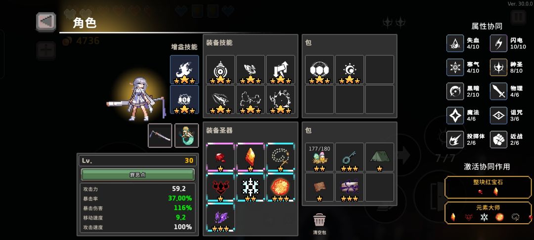 元素大师可以获得四种协同+3,组成圣器效果中还有红宝石(1神1暗)和各种+1圣器(火,电,神,冰,血),这个协同组可以获得1火1暗4冰4电4血5神,电可以提供高额增伤,神圣可以获得额外技伤,冰可以获得护盾