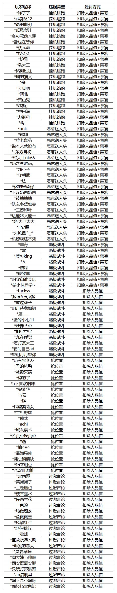 内务组将定期公布部分游戏违规处罚名单,以上为本次公布的存在游戏违规行为的阴阳师大人,还请各位大人引以为戒!