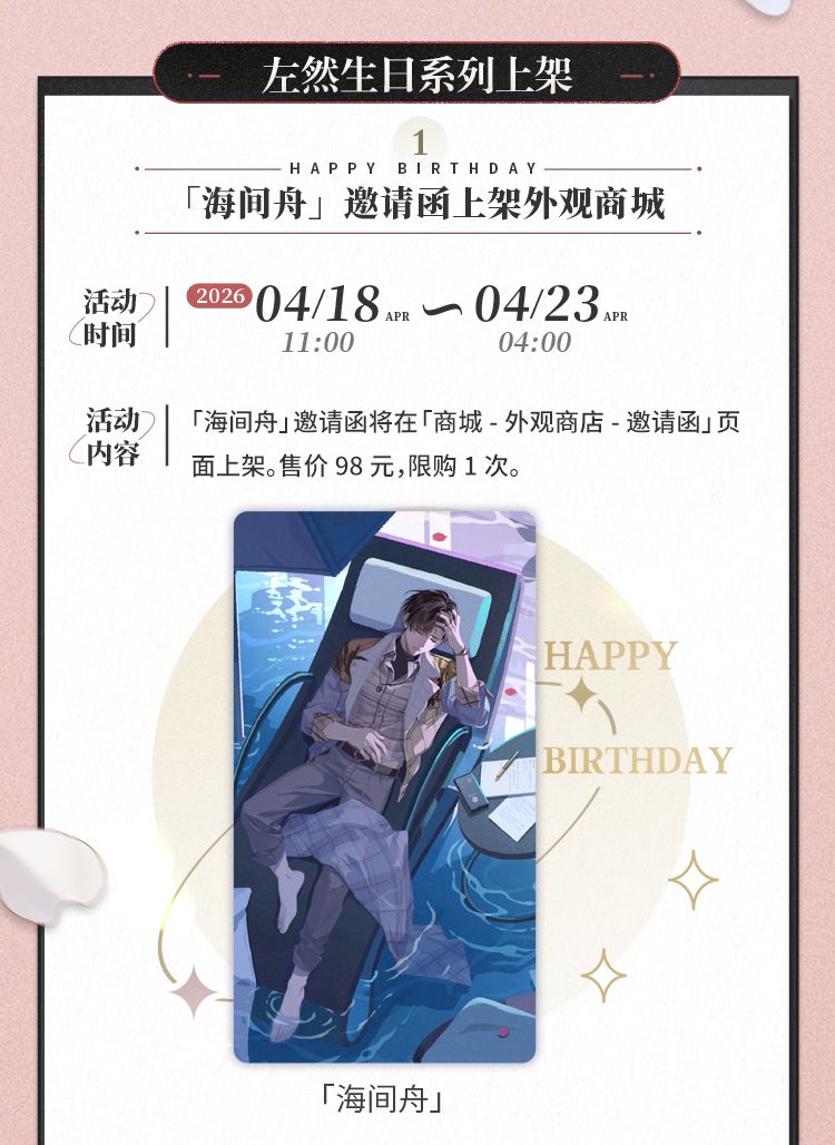 2026年4月15日11:00,左然生日系列复刻即将开启!