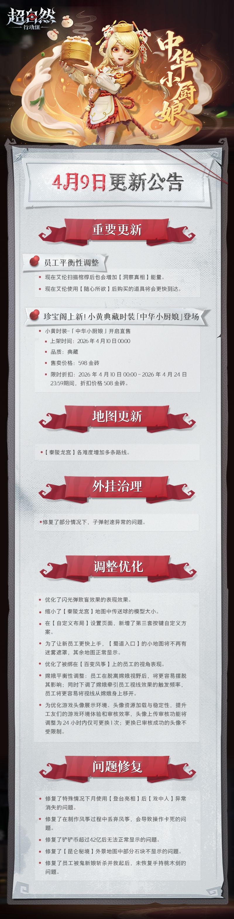 4月9日更新——艾伦加强,小黄-「中华小厨娘」即将开启直售!
