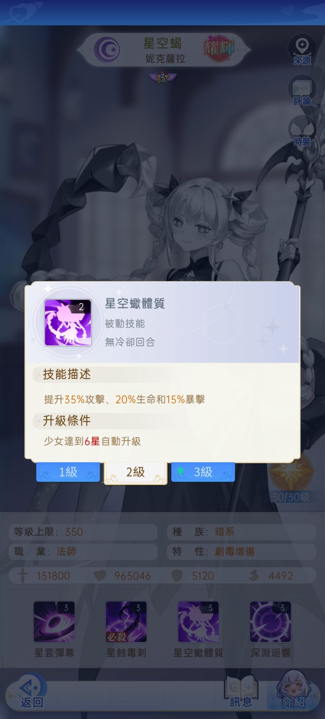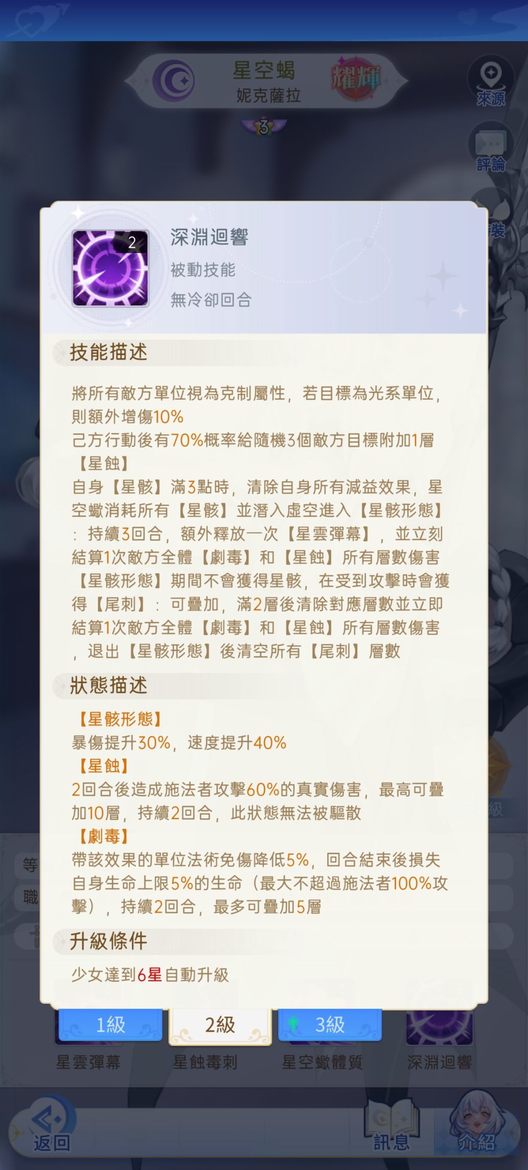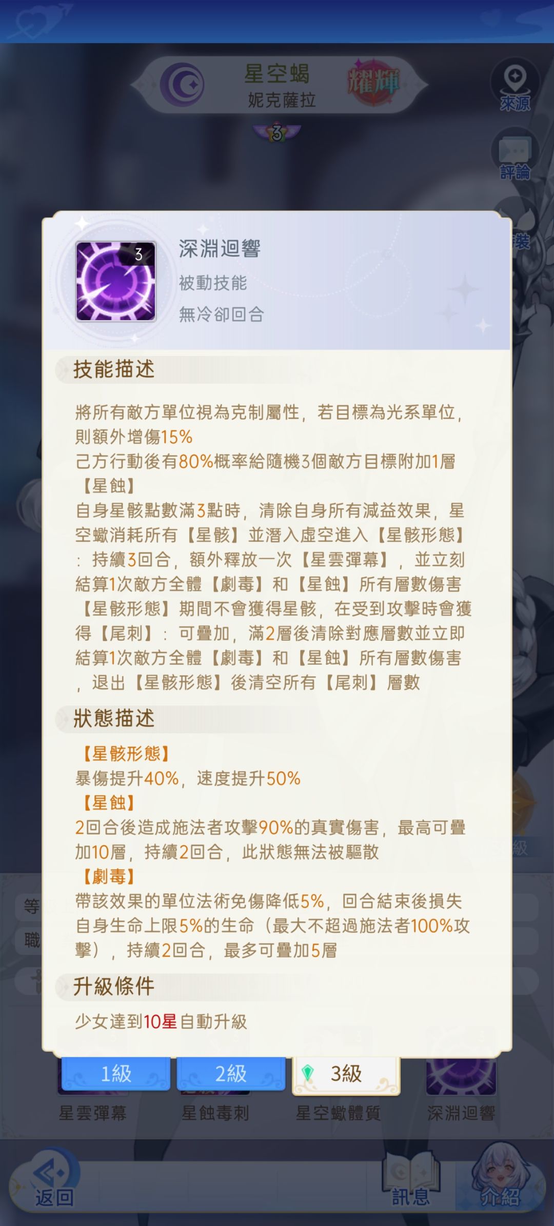 星空蝎的技能包括8星和9星,还有觉醒