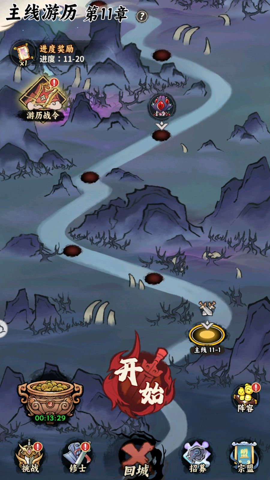 需要注意的是,主线游历中掌门仅能上阵5名修士,阵容搭配直接影响推关效率,一定要仔细斟酌哦!