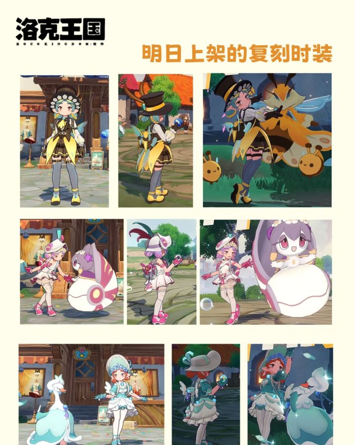 《洛克王国世界》内测时期的“重逢圆舞曲”系列时装明日(4月10日)正式返场!包含翠顶夫人、花魁蜂后、卡洛儿三套,错过内测的小洛克这次可以免费补齐了!