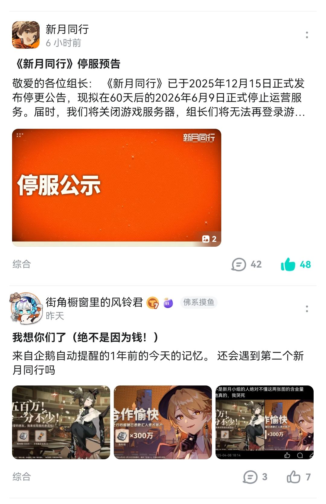 新月同行这个公告发的是会挑时间的,前一次是生日前一天15号,16号的生日剧情和15号的生日前瞻,这次是我刚发完记录的第二天。唉,你就是这么对我的。
