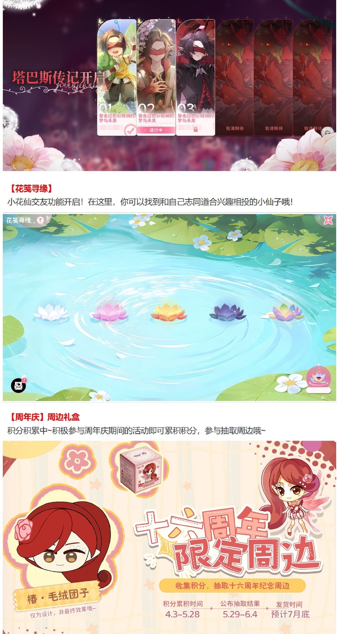 塔巴斯传记第二章「花笺寻缘」上线,解锁周年庆专属剧情线。同时花仙乐园地图优化,体验更流畅。