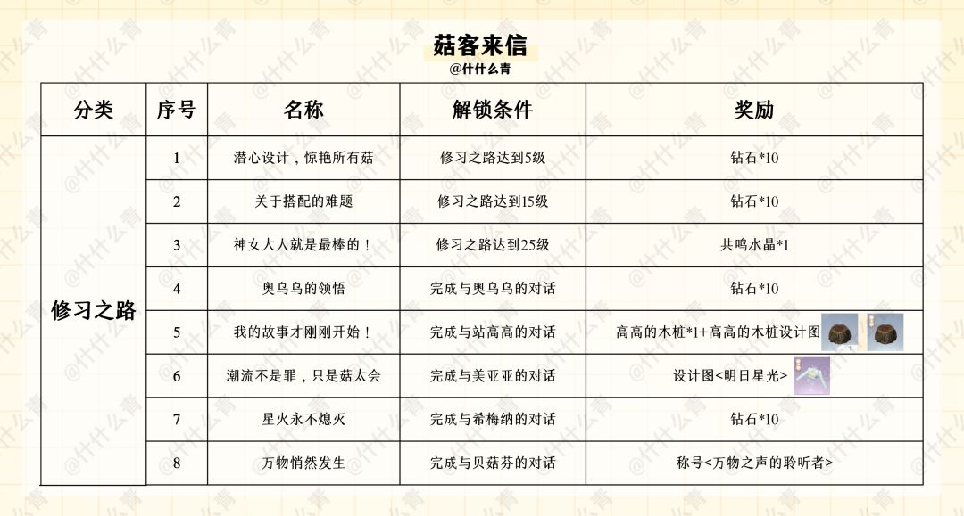 无畏之途的守护者/星跃平野/清凉果饮/甜蜜之旅的播种者/童真誓约/花眠小瓮/菇彩瓜球/时光花语/紫雾花韵/曦影流珠草叶织愿/风舞梦萦/晨星辉光/明日星光/万物之声的聆听者/活力之光的养育者