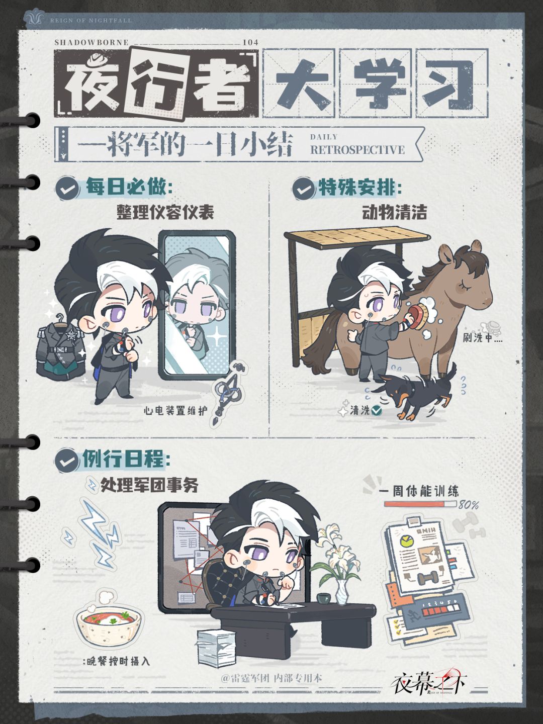 此篇摘自夜行者「将军」私人日志中非涉密的部分日常条目。我们可以发现,即便是在日常生活中,这位军团长也依旧会按照标准化流程逐项规划、记录、总结归档,堪称雷霆军团内部模范学习材料。