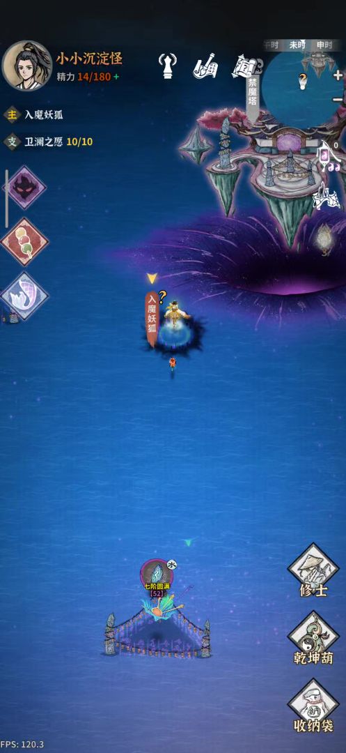 打到这里已经开启幻青秘境,幻青秘境正常一天清空一次小怪与boss即可,清空后记得提升难度,一天提升一次直到提升至难度5,然后可以用“幻青符”重置秘境重复刷新获取幻青石升级神宝