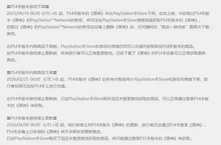 PS4版原神停服!玩家感谢陪伴