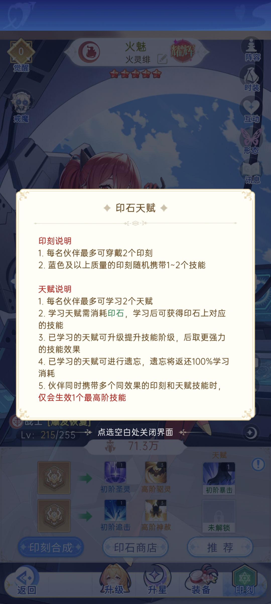 刚接触这个游戏小半个月,刚刚也是刚75级了然后这个刻痕还有印石天赋啥的弄不明白求指点~!还有这个阵容该怎么调配呀后续怎么发展,除了火灵绯,奶牛和天使有必要拉十星嘛