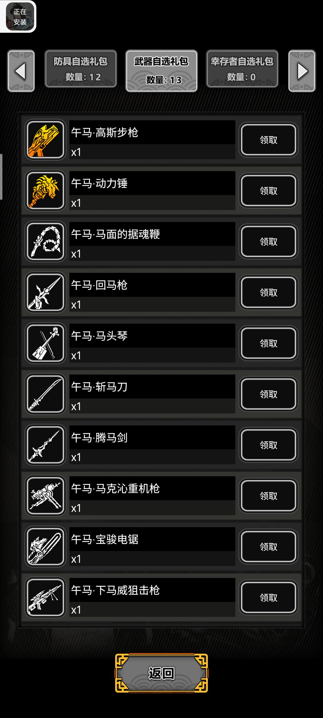 帮我帮我看一下载具还要选哪几个?武器防具的话应该可以全部拿下吧?