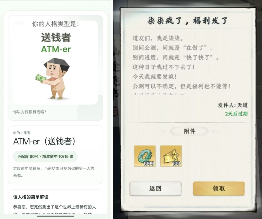 。【柒柒日记】SBTI 测出「送钱者 」全服道友发福利,ATM 永不打烊