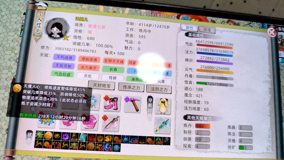 不灭区沐婉儿,随意修改游戏数据,这怎么玩?一晚上40亿经验,传承功法9层到18层,演都不演了了?