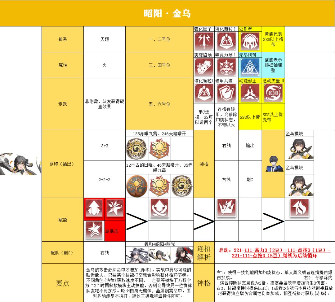 昭阳·金乌培养攻略一图流