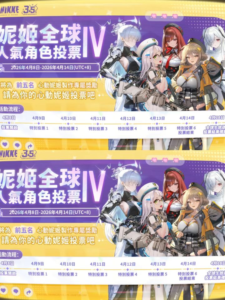 近日,国际服胜利女神妮姬迎来3.5周年庆,官方正式开启全角色人气投票,一下子就在玩家圈里掀起热潮,大家都忙着给自己喜欢的角色投票拉票。