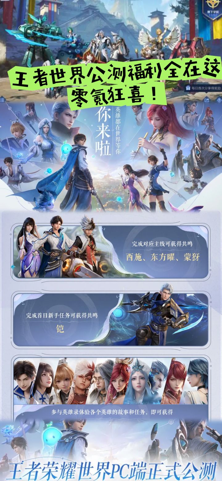 王者世界公测福利全在这,零氪狂喜!