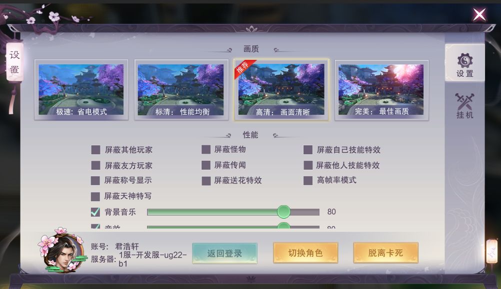 在设置界面,玩家可针对游戏内的各项显示进行屏蔽或者显示设置,以适应玩家不同机型配置,获得最佳的游戏体验。当使用飞行功能卡死时,可以点击脱离卡死摆脱。