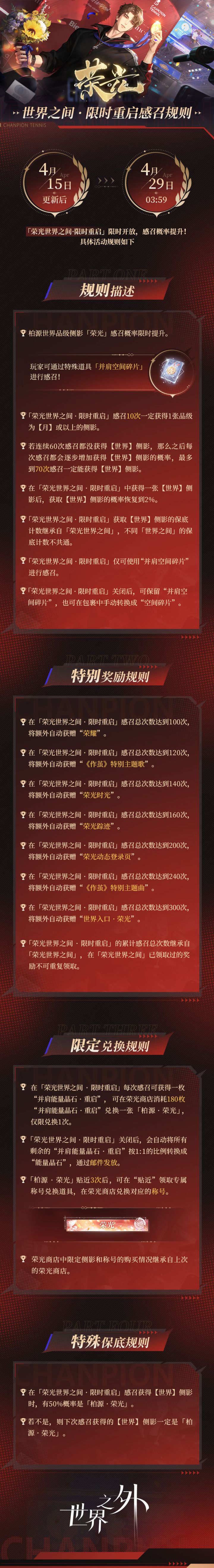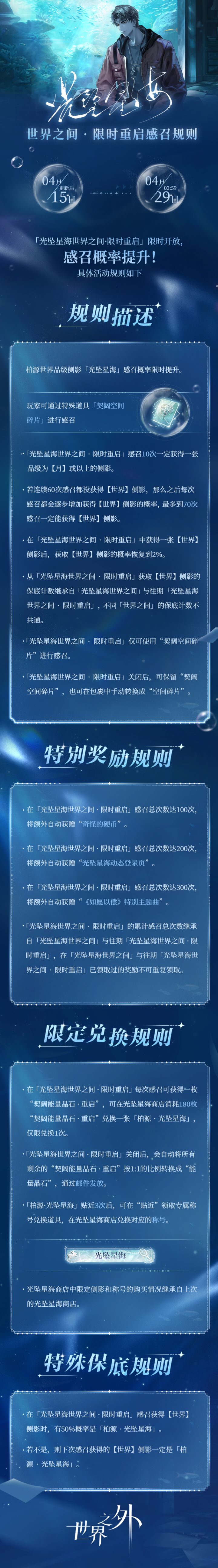 ⭐4月15日更新后-4月29日03:59,柏源2025年生日「荣光世界之间」和柏源2024年生日「光坠星海世界之间」限时重启,即将开启!