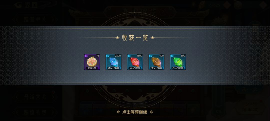 然后就是春意大爆发抽出百花币,如上图所示(有的没来得及截图),可能是我运气不好,还有50、75这种,无法可说。