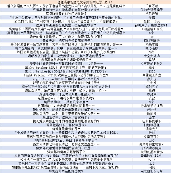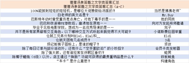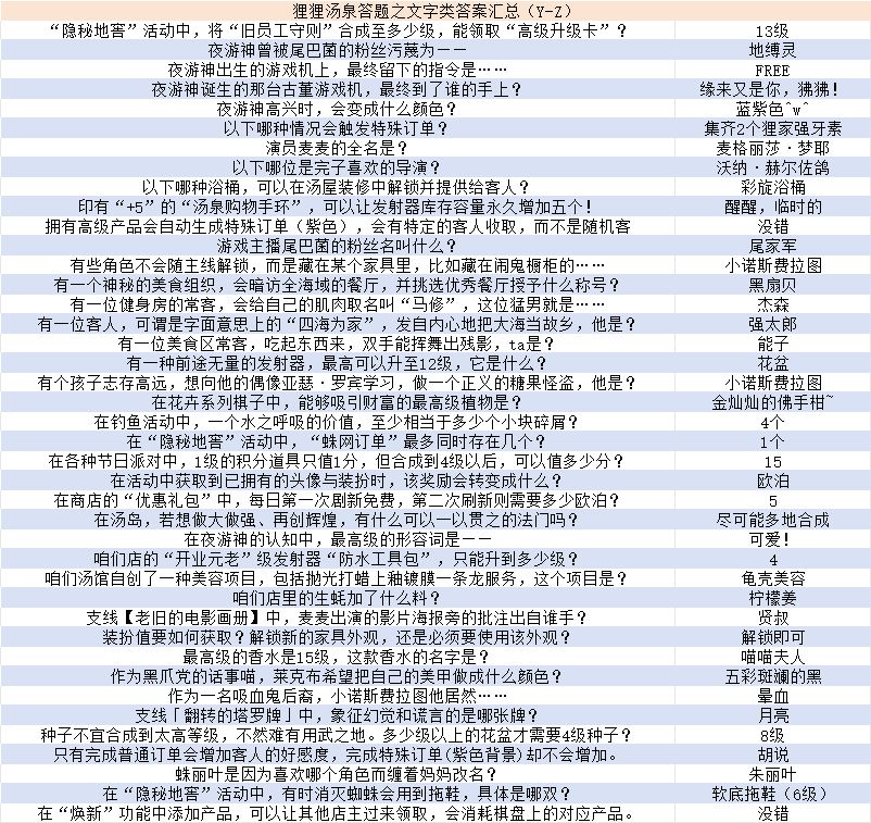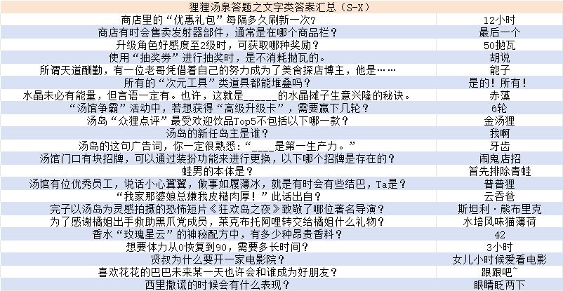 狸狸汤泉答题之文字类答案汇总