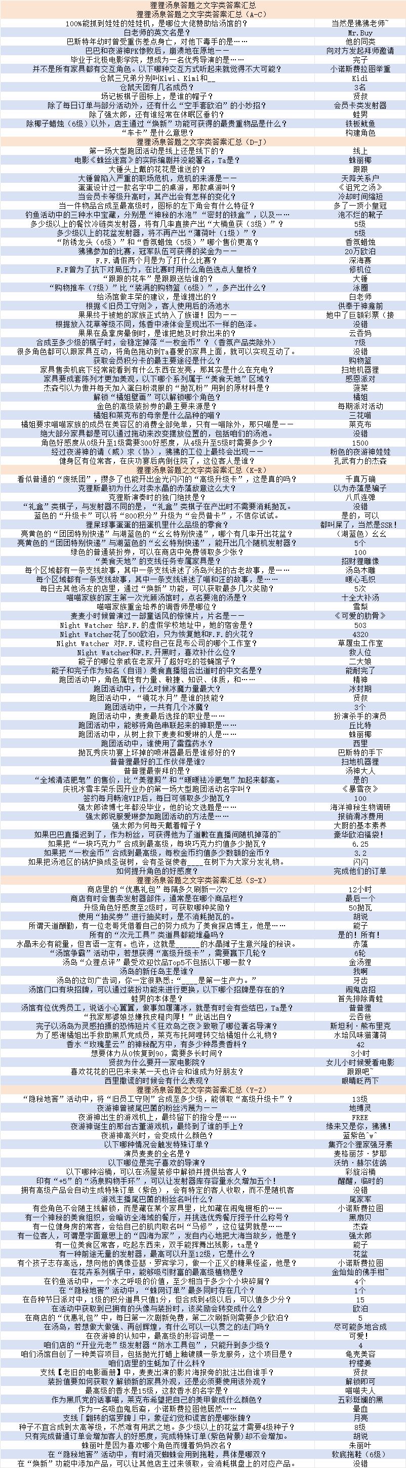 📋 表格使用说明: 题目按【首字首字母】A—Z排序,大家可以快速查找对应问题。