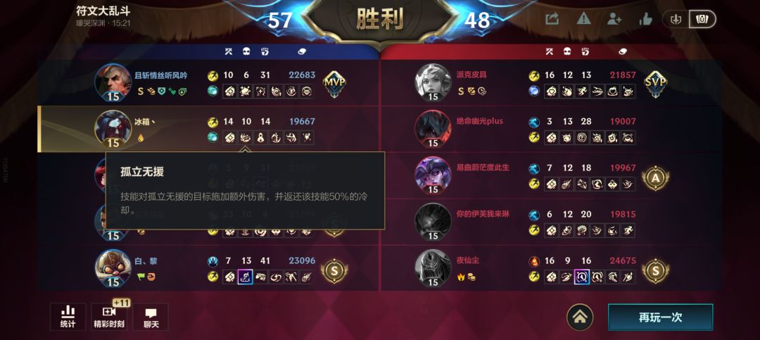 具体是什么原因,我也不敢特别确定,但是我认为大头应该是拿了孤立和全凭身法(大招是位移的英雄有效)。加上我符文里这些减cd的,我最后一次看大招cd好像是20多秒,但是实际情况开完大之后却是10多秒(没触发孤立的情况下)触发孤立之后直接就无限大招了。我也不知道是为什么,按理来说孤立减50%cd应该是从20多秒减到10多秒,不能直接刷新好大招啊