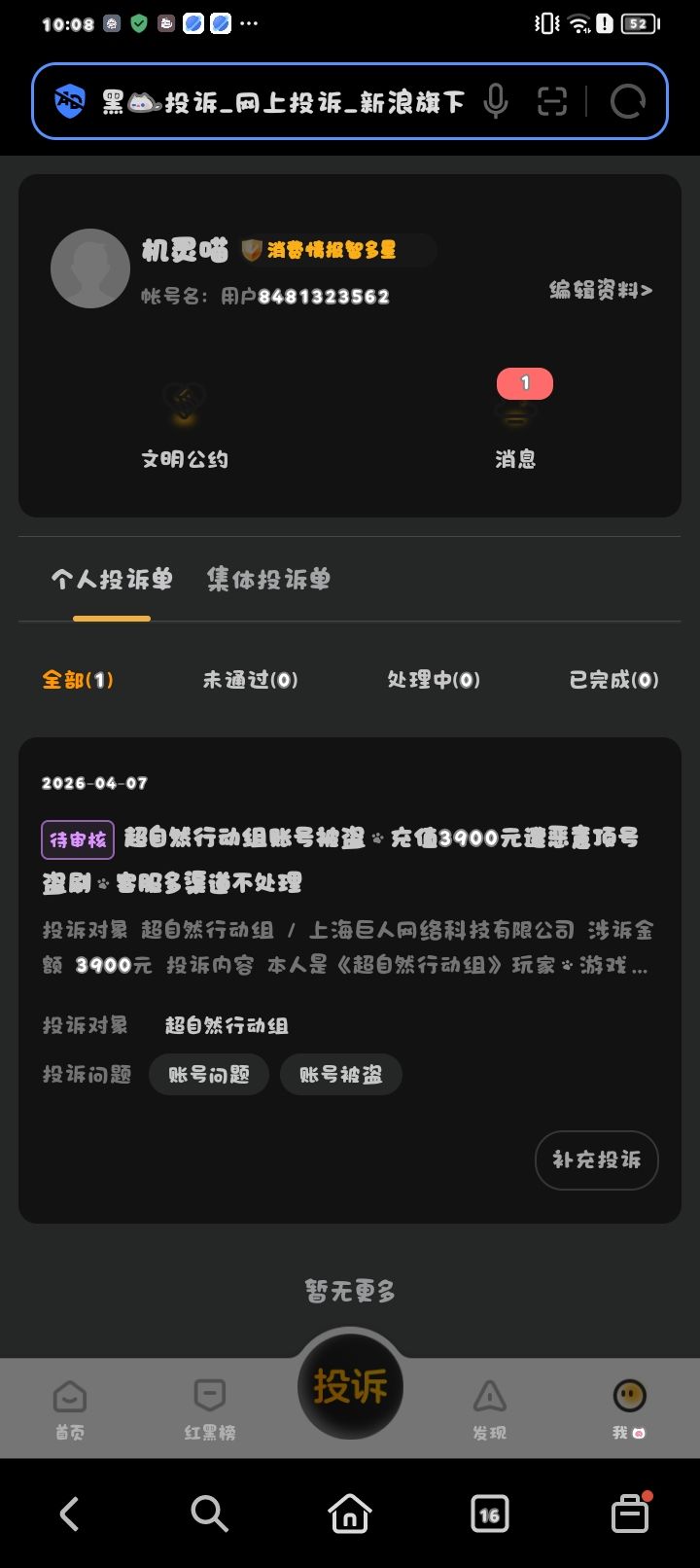 已经在游戏客服、QQ、12315都投诉过,等了好几天,官方一直不处理、不回复、不给人工核验。