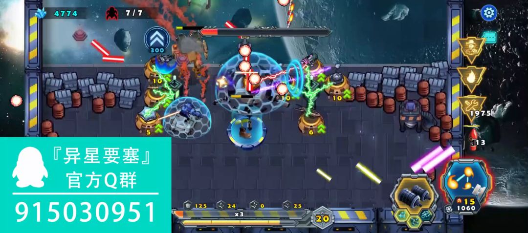 第四关,本关我们将面临7波敌人的疯狂进攻,而我们的核心任务是保护好植物样本,确保它不会被损坏。在战斗过程中,每打掉一个小怪,我们会有概率获得枪塔作为奖励。建造完枪塔后,植物样本的防御能力将得到进一步提升。主车建议选择反弹光线枪塔,副车配置火箭炮枪塔,本关的战斗策略是与敌人展开一场远程持久战。我们要时刻围绕在植物样本四周,灵活应对敌人的攻击,坚持到成功抵御完7波敌人,即可顺利通关。