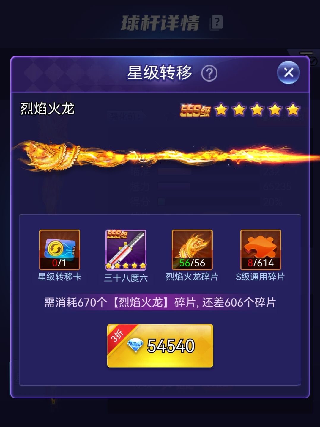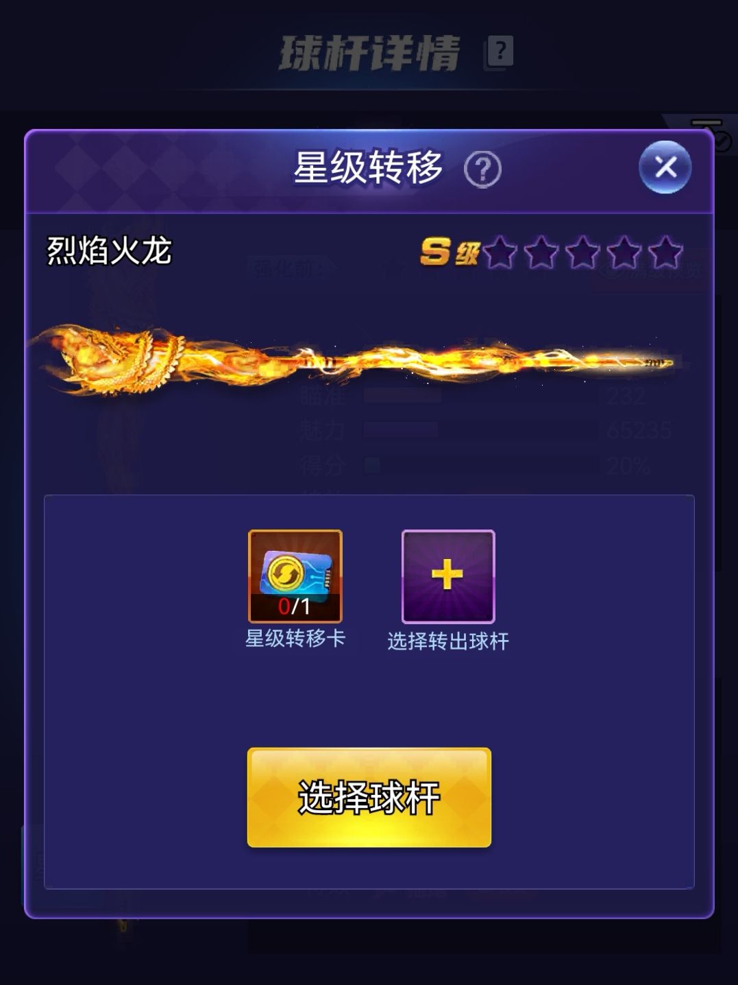 1️⃣ 移入的球杆:必须是 S级0星 的杆(用来接收星级)