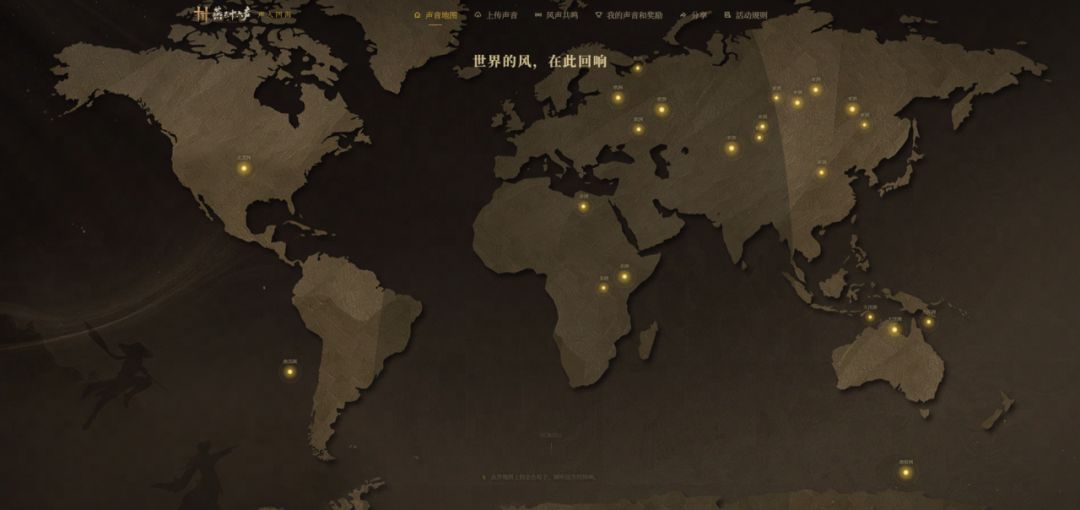 活动首页中,游侠可点击任意大洲的粒子,聆听来自世界各地游侠上传的真实声场。