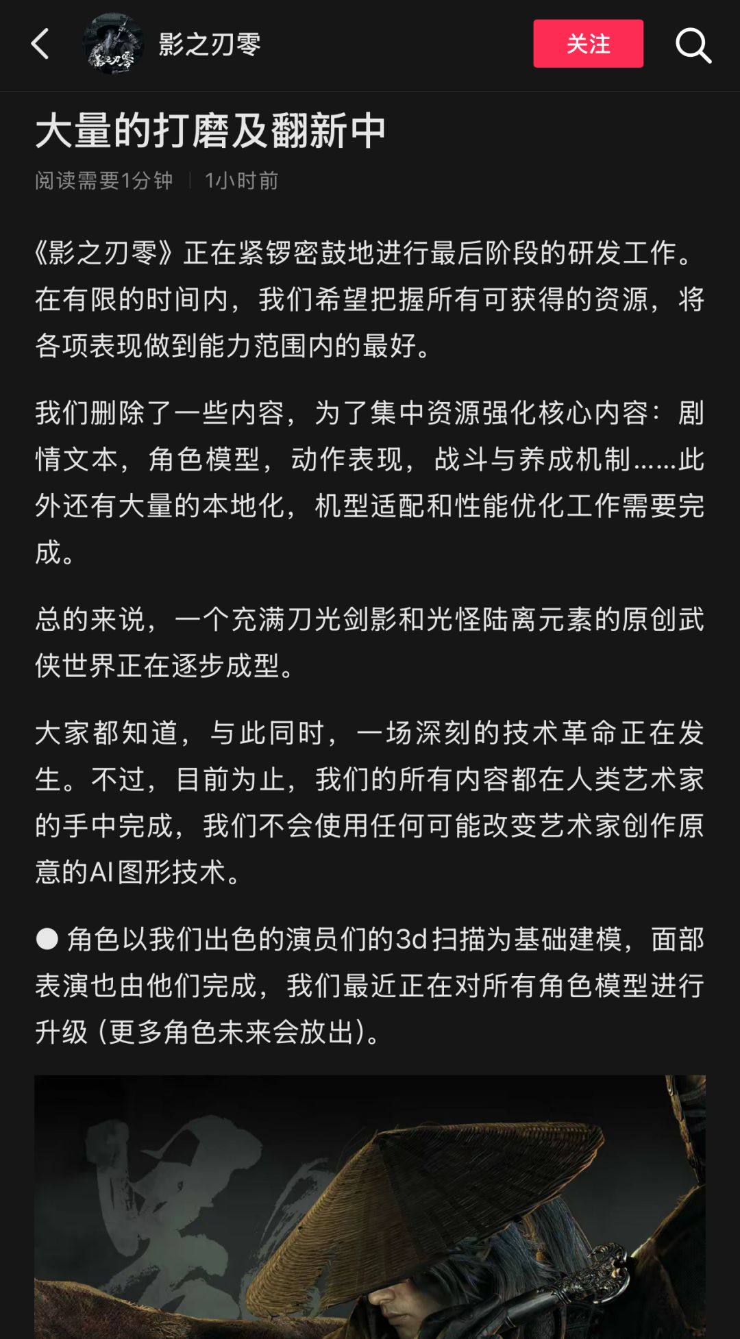 《影之刃零》制作人梁其伟发布文章,表示游戏已进入最后阶段的研发工作。本作将于 2026 年 9 月 9 日登陆 PC 与 PS5 平台,快了,还有5年~