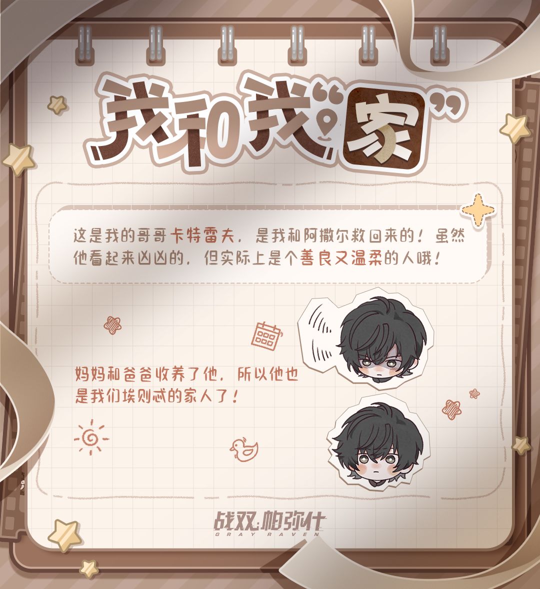 小小的纸页上涂画着“家人”的形象,少年饱含热情地介绍着他的珍宝。