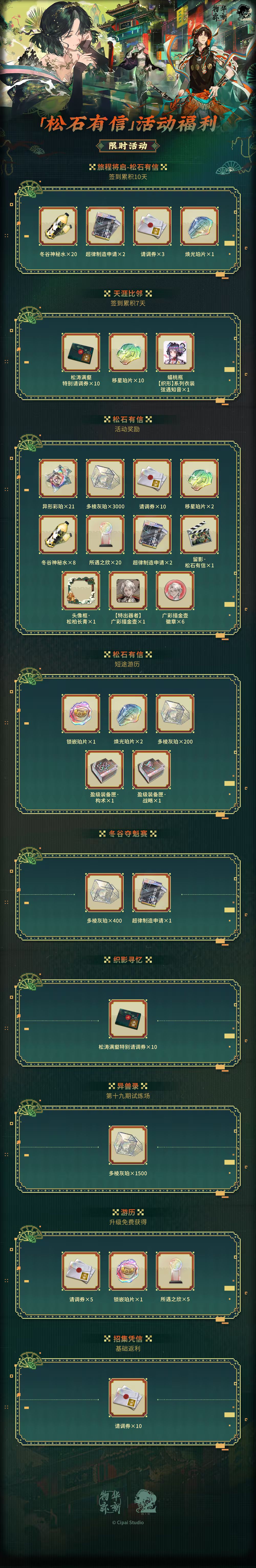 - 完成「织影寻忆」活动,再送松涛满壑特别请调券 ×10,累计20抽免费到手;