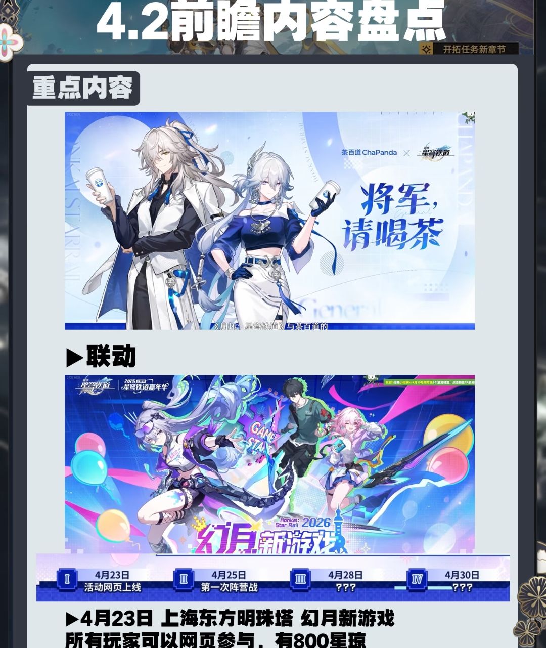 4月10日 19:30:4.2版本前瞻直播(必蹲300星琼兑换码)。