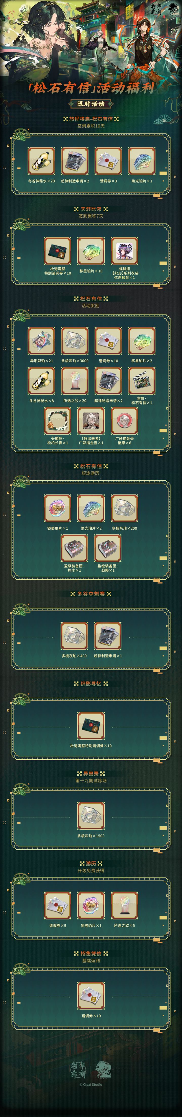 物华弥新二周年庆典即将于4月16日随3.0上版本松石有信同步开启,官方今日放出了福利概览。本次周年活动奖励相当丰厚,值得收藏家们提前规划。