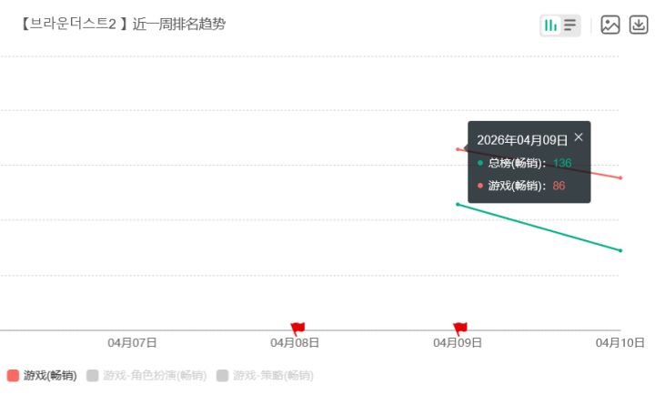 第三方平台数据显示,4月9日游戏在总榜畅销榜排名第136名,游戏畅销榜排名第86名