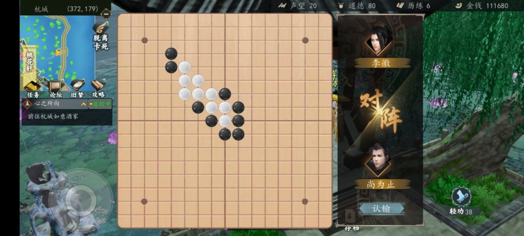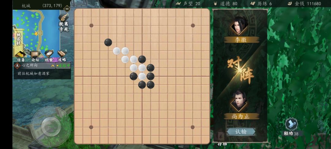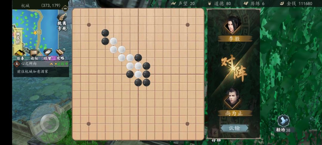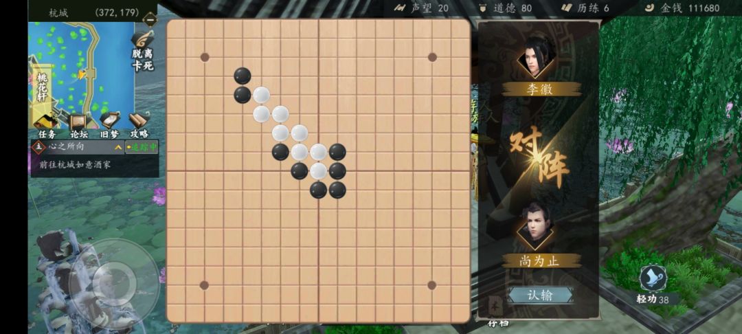 2.它下在你的上下左右。如果在右侧,你就上左上左,注意不能从左开始,必须从上开始。上左上左上左上左8子之后,你就能找到一个位置形成2组自由的3子连线,就赢了。